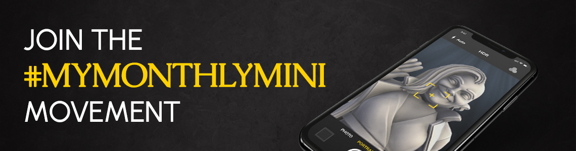 - Showcase Your Masterpiece: Use our creator’s “share” function to post your creation on Facebook, Instagram or Twitter. Tag us with @EldritchFoundry and include the hashtag #MyMonthlyMin. Important note: you don’t have to purchase your creation to share it!